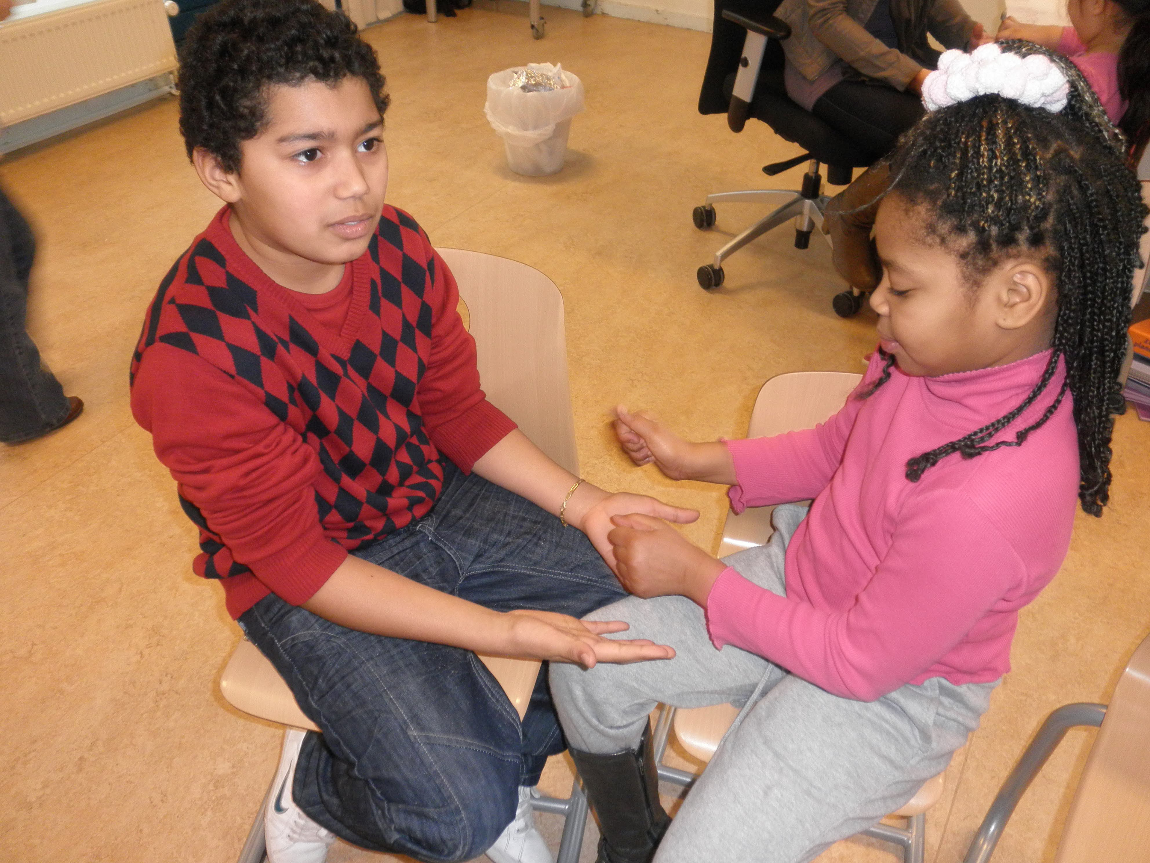 Massage wordt door veel mensen, volwassenen en kinderen vaak ‘eng’ gevonden: wat is massage precies en waarom moét dat? Waar is het goed voor’? Is het niet ‘zonde van de tijd’? Rationeel wordt gedacht dat masseren eigenlijk geen ‘functie’ zou hebben… Als wij, volwassenen en kinderen, denken zo vaak te weten wat goed voor ons is: waarom zijn dan toch nog veel volwassenen ongelukkig en zijn ook veel kinderen niet helemaal tevreden? Alles wat ze doen en wat hen aangeboden wordt op het gebied van onderwijs en buitenschoolse activiteiten geeft toch nog een leegte. Ook ontbreekt vaak het contact met ouders, die het zelf vaak druk (denken te) hebben! Kinderen zijn vaak eenzaam , voelen zich niet begrepen en zitten daarom niet lekker in hun vel en zijn daarom druk en/ of agressief! Zijn computerspelletjes en allerlei apps op de mobiel de oplossing? Leren kinderen zich hierdoor ‘gelukkig’ zelf te amuseren zonder dat je als ouder last van hen hebt?!