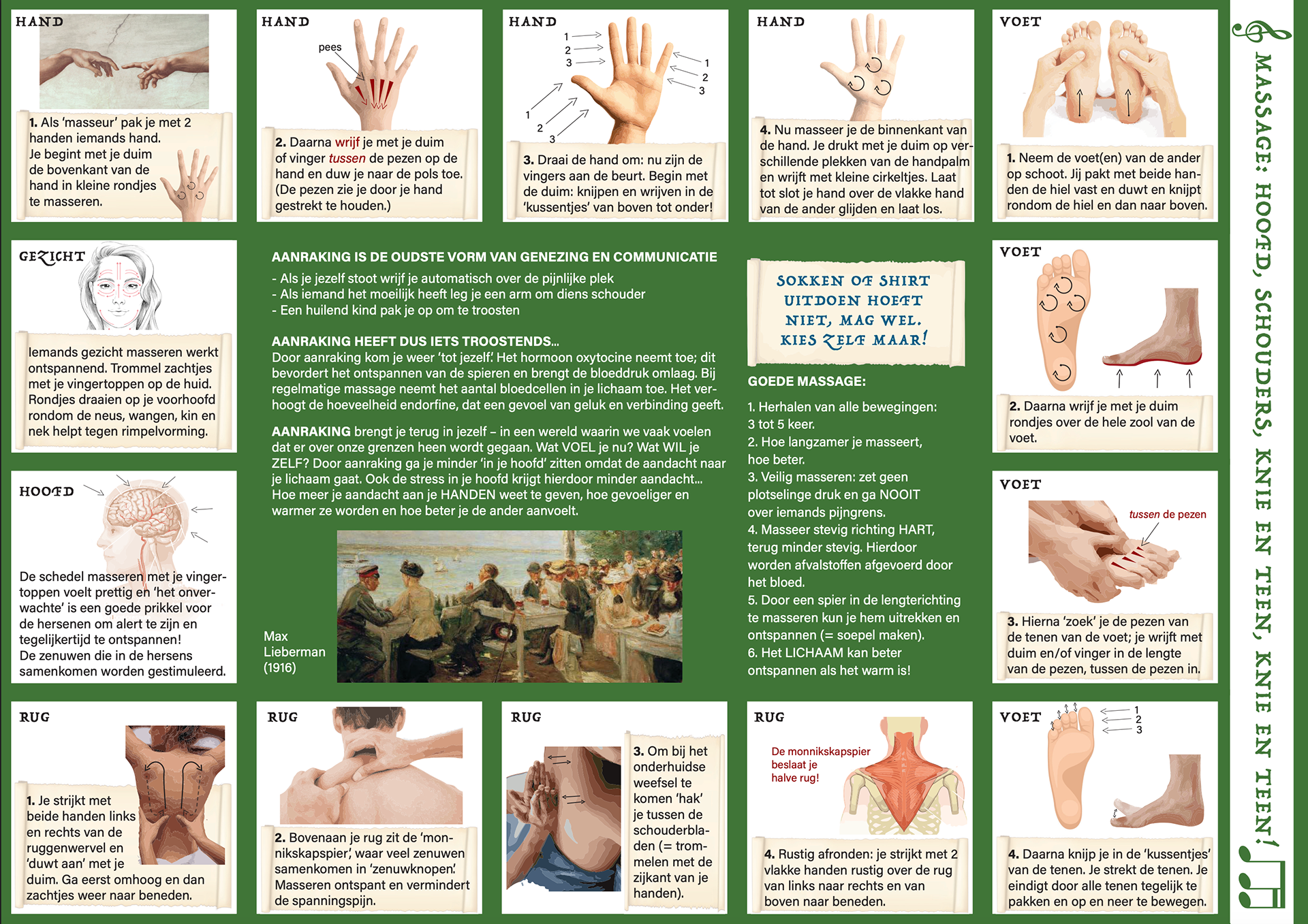 Een van de middelen om een ander wezenlijk te bereiken en iets voor te kunnen betekenen is massage. Niet voor niets hebben Scandinavische landen masseren al in het vakkenpakket op school. Daar is duidelijk al bewezen wat voor een positief effect dit heeft op het welzijn en de leerprestaties van kinderen.