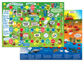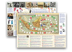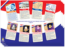 Er zijn de verschillende spellen die je ontvangt in een spellendoos met grote houten pionnen, waar je over verschillende tafels verspreid de duurzaamheidsspellen, De Couperus levensloop Ganzenbord, Memory of De Slag om Holland mee kan spelen. Altijd zit er bij dit pakket het Koningsspel in waar je ook 3 op een rij mee kan spelen en andere kaartspellen zoals ‘pesten’ en kwartetten etc.