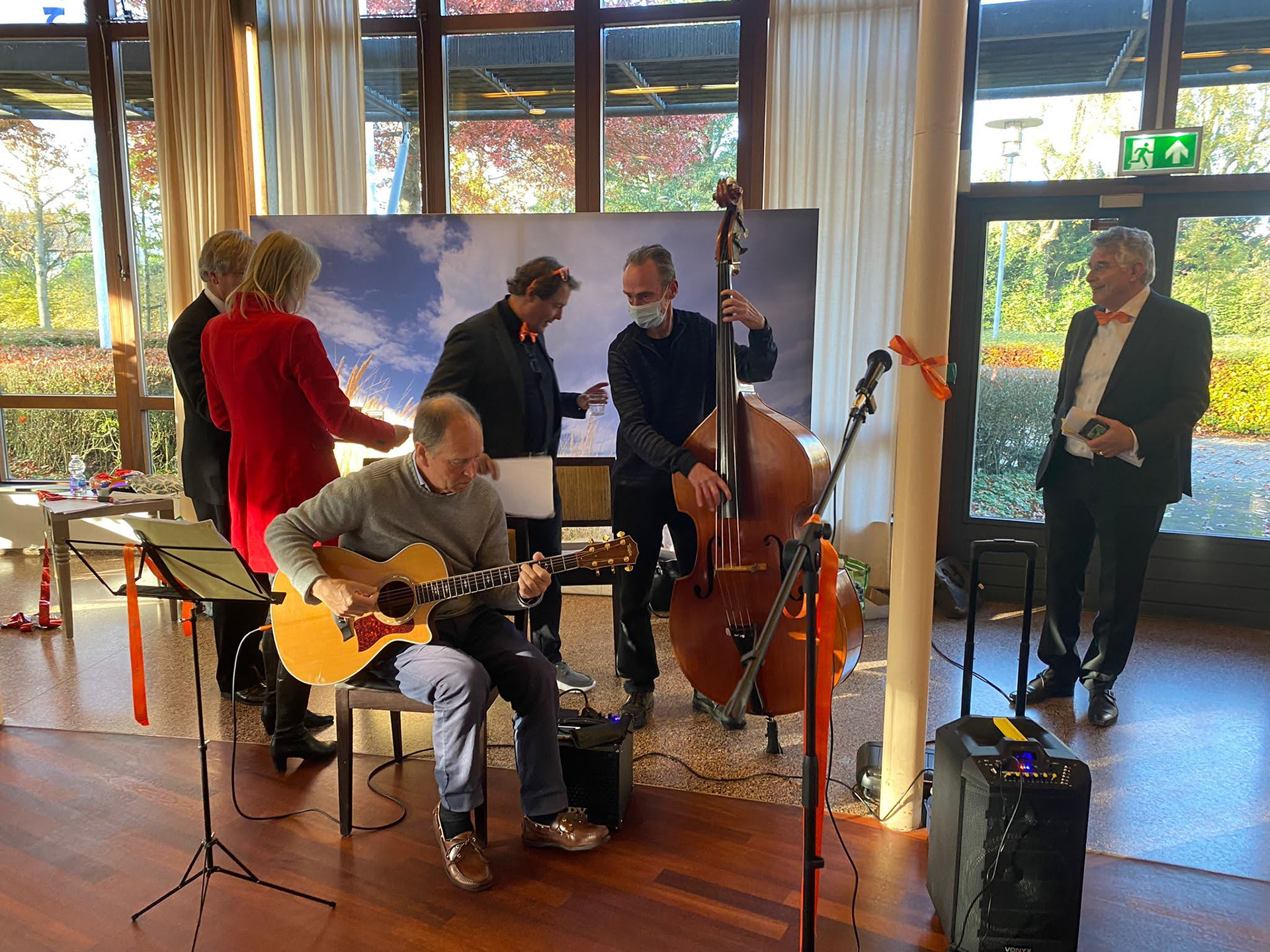 Je bestelt bij SCO een aantal zangbundels of PRINT een aantal liedjes uit die je wil gaan meezingen - zie hieronder. Om het geluid door de hele zaal te laten klinken kan je hier een Fresh and Rebel box bestellen en de rekening kan naar Stichting creatief onderwijs. Je speelt de muziek af - zie CD AFSPELEN - hieronder.