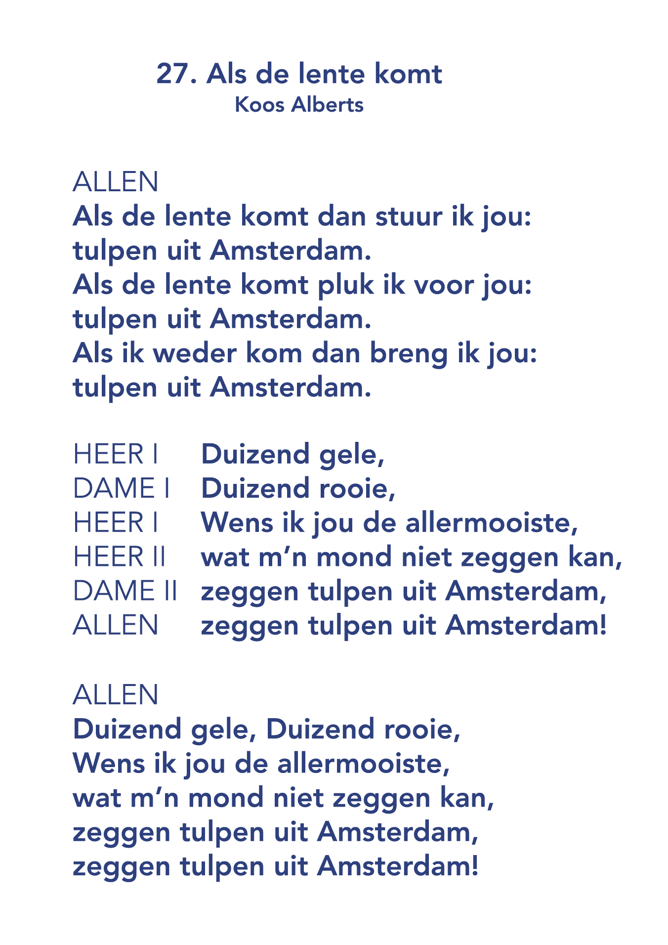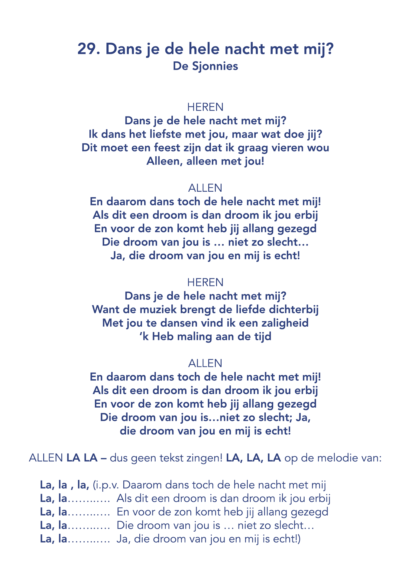 Je laat de muziek luid en feestelijk afspelen en zingt mee of probeert in ieder geval zo goed mogelijk mee te zingen maar de muziek uit de box doet dus al het werk! Je deelt een aantal muziekbundels uit aan de bewoners van het verzorgingshuis en aan de leerlingen van de school, die mee kunnen zingen aan de hand van de zangbundel. Je gaat zelf vrolijk gekleed in een kleur die jou aanspreekt en vraagt wat vrienden en vriendinnen om mee te komen zingen. Gewoon voor het plezier; de muziek van de cd wordt afgespeeld dus je hoeft zelf niet te kunnen zingen! Het gaat om het plezier dat je samen eraan beleeft. Als je wat eenvoudige muziekinstrumenten in huis hebt zoals een tamboerijn of trommel of triangel ofzo is dat leuk om die mee te nemen en op de tafels te leggen om mee muziek te maken. Beweeg/ Dans een beetje met de muziek mee als die afgespeeld wordt; dat werkt aanstekelijk voor jong en oud om mee te gaan doen! Na ongeveer 3 kwartier verzamel je weer de zangbundels bij elkaar, te gebruiken voor een volgende keer! Sing Along deel 1 en deel 2 - Zie hieronder - kunnen ook geprint worden als PDF's .